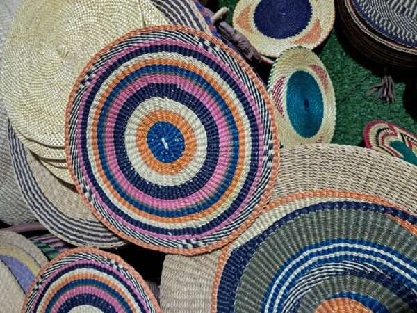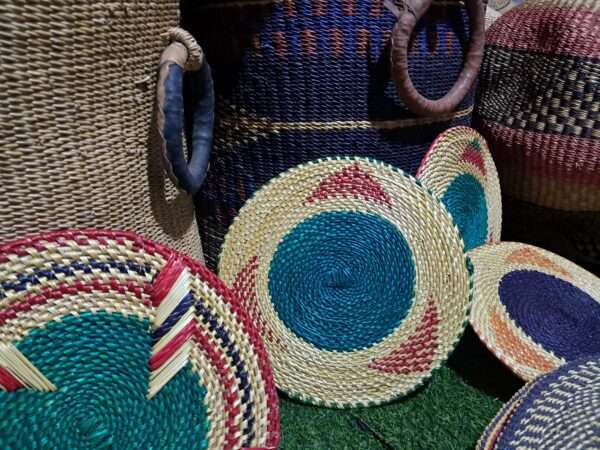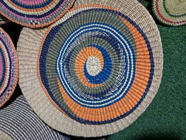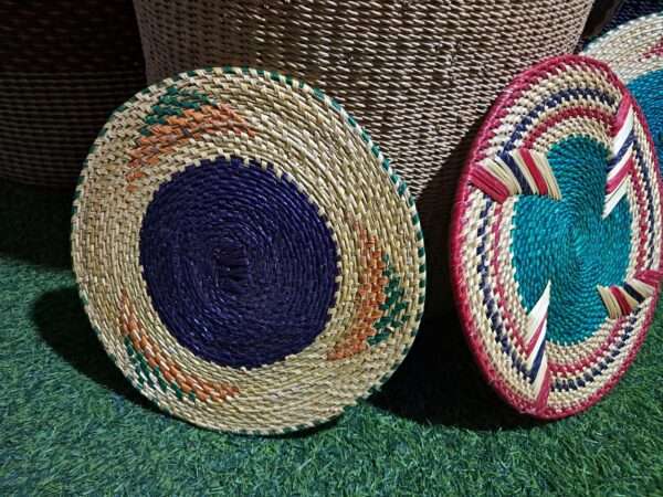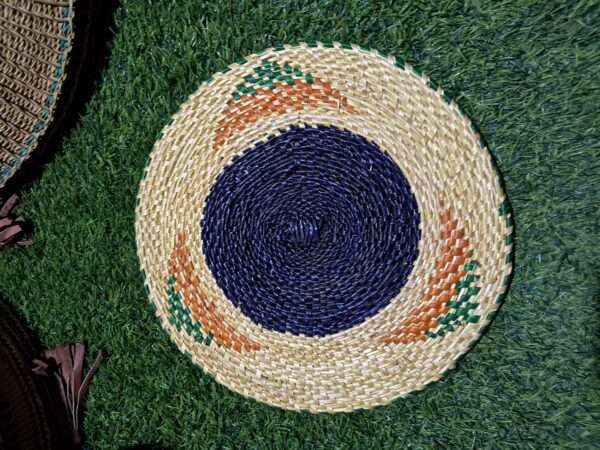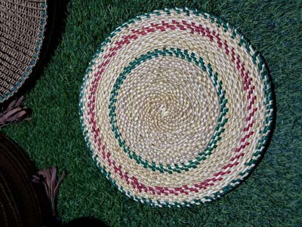 Beautiful Table and Wall Dekor Mat. Made from 100% Northern dried grass straw with colorful patterns and vibrant colors.